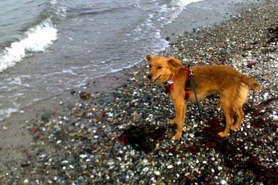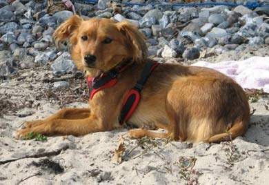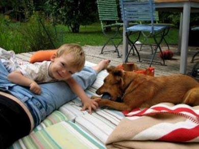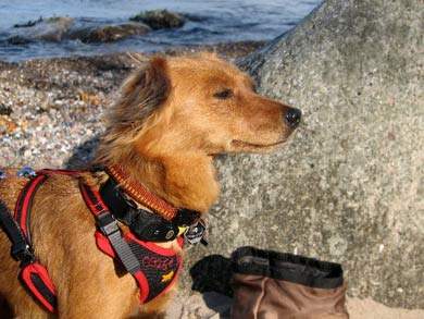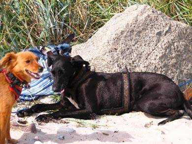 hier mit Frauchen Sophia beim Faulenzen am Stand