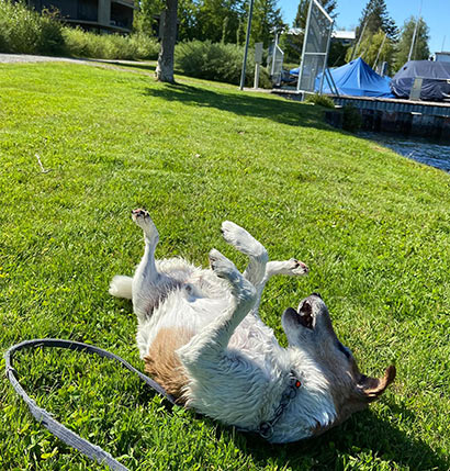 Farouk liebt es morgens im See zu baden, dass findet er toll und taucht auch mal mit dem Kopf unter :)).