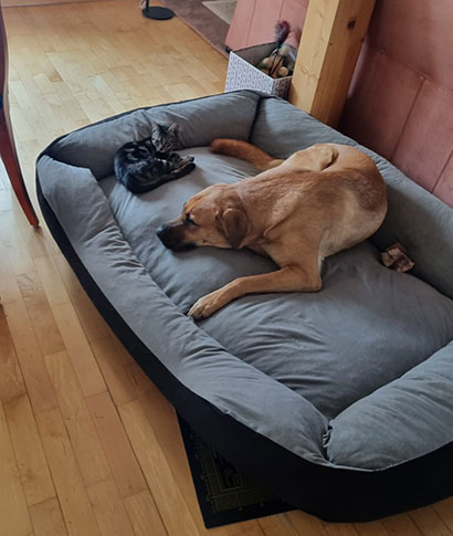 Unser Finchen hat jetzt noch eine Katzenfreundin bekommen. Wir sind stolz auf sie, sie macht das alles ganz toll mit.