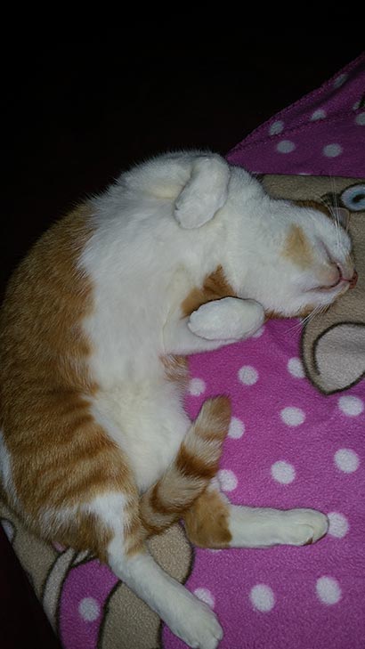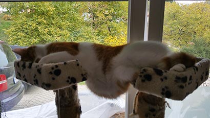 Abends bin ich dann immer ziemlich fertig und nachdem ich dann noch was gefuttert habe, lege ich mich auch gleich auf’s Ohr, Calypso meist neben mir.