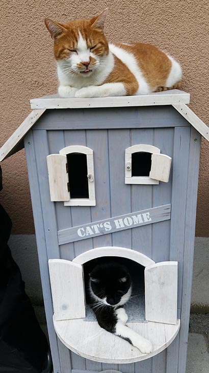 Wie ihr seht haben wir unser eigenes Haus,sogar im großen Haus ein eigenes Zimmer und viele Kumpels die auch hier wohnen. Wir verstehen uns alle echt gut und so wird es niemals langweilig. Nun fühlt euch alle schnurrig umarmt. Viel Glück für euch alle das ihr auch bald ein schönes Zuhause findet.