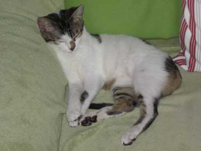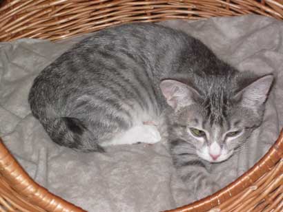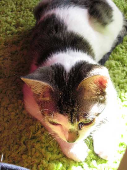 Chloe wurde inzwischen kastriert. Sie war sehr lieb und hat ihre Naht schön in Ruhe geslassen. Die Tierärztin war dann auch beim Fädenziehen sehr zufrieden, die Narbe ist gut verheilt.
