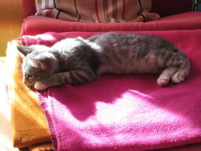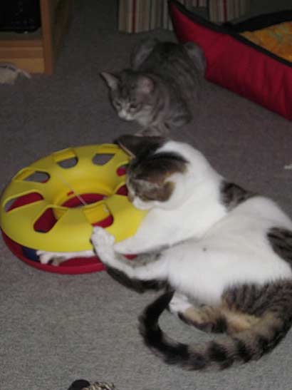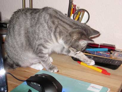 Chloe rast gerade mit ihrem Bällchen durch die Gegend, Francis sitz neben meinem Laptop und will mal wieder beim Schreiben helfen.