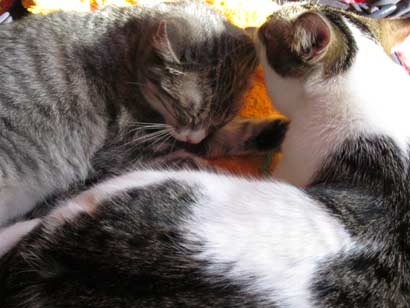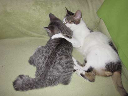 Die beiden mögen sich so sehr. Sie spielen, raufen, schmusen und chillen zusammen, es ist eine Freude!
