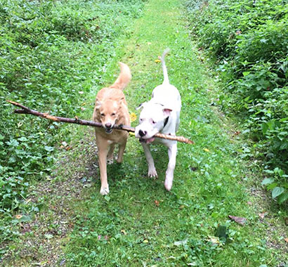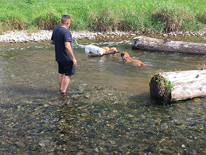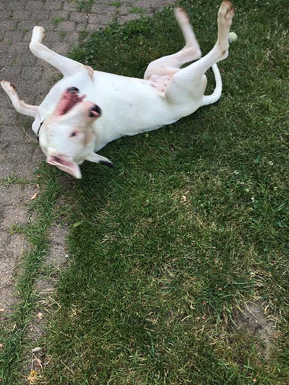 Er ist nun der Star in der Familie und alle lieben den Hugo. Er liebt es im großen Garten zu toben und mit seinen geliebten Bällen und der Nale zu spielen.