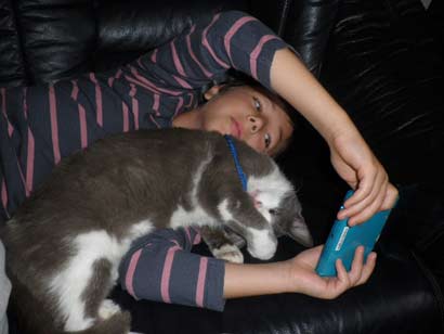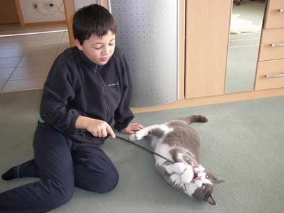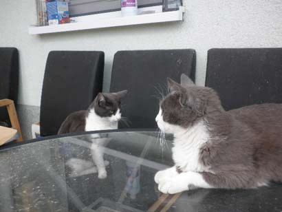 Hallo Frau Wondrak, hier sind die versprochenen Bilder. Gabo wird von uns jetzt Leo (Leopold) genannt. Er hat sich mit Caro auf Tuchfühlung begeben, aber sie will immer noch etwas Abstand. Sonst ist alles okay, wir haben viel Freude an Leo. Viele Grüße von den G.