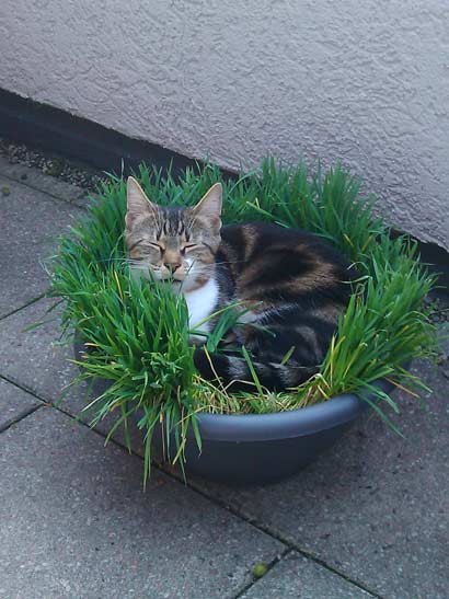 Astuce zeigt ihm schon noch, wo seine Grenzen sind (z.B. wenn er gleichzeitig mit ihr aus ihrem Napf fressen will). Aber nur mit fauchen ohne beissen oder sonst was.