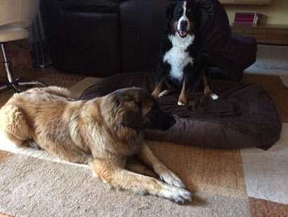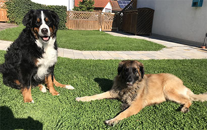 Sie scheint sich bei uns sehr wohlzufühlen, liebt ihr Herrchen abgöttisch und auch mit ihrem neuen Sennenhund-Kumpel gibt es keine Berührungsängste, sie fordert ihn sogar zum Spielen auf.