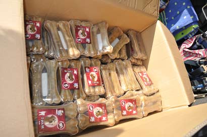 Und dann kam die zweite Überraschung: unser Besuch hatte das Auto vollgeladen mit Spenden für die Tierheime. Mehrere Schubkarren wurden ins Tierheim gefahren mit Hunde- und Katzenfutter, leckere Kauknochen und neuen Decken. Das alles hatte Chipie's Frauchen besorgt, um das Tierheim zu unterstützen und den Vierbeinern eine Freude zu bereiten. Ein herzliches Dankeschön dafür von uns Allen!!!