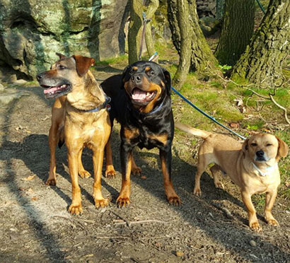 Hundebegegnungen selbst mit kleinen Hunden verlaufen entspannt auch an der Leine :)