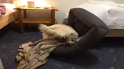 Allein bleiben geht außerhalb des Autos immer noch nicht. Wir haben eine neue Katze, die ziemlich gnadenlos mit ihr umgeht.