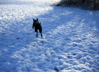 Bardou geht es gut. Ich glaube, er ist jetzt wirklich angekommen. Neulich ist er mir ausgebüchst, ca. 500 m von zu Hause weg. Wahrscheinlich ein Eichhörnchen: Weg war er im Gebüsch und kam nicht wieder trotz Rufen und Suchen. Nach 20 Minuten bin ich mit mulmigem Gefühl nach Hause gegangen und da hat er mich schon erwartet!