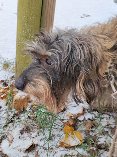 Hyndia fühlt sich bei uns pudelwohl.... obwohl sie ja ein Rauhhaardackel ist. Heute auf den Tag genau ist ist sie ein halbes Jahr bei uns und hat ihr neues Revier bereits richtig gut im Griff.