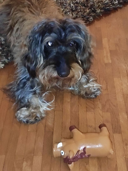 Auch das Christkind kennt Hyndia gut. Sie hat ein kleines "Keilerchen" bekommen, das ist jetzt ihr Lieblingsspielzeug. Und nach getaner "Arbeit" ist erst ein Mal ein ausgiebiges Nickerchen nötig.