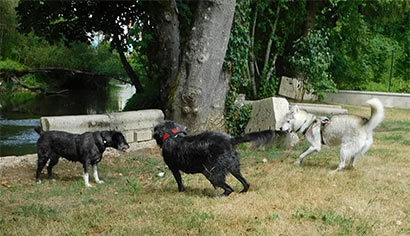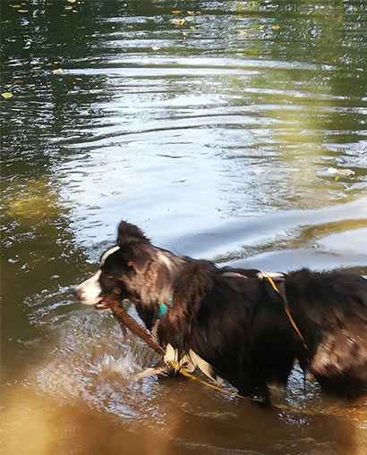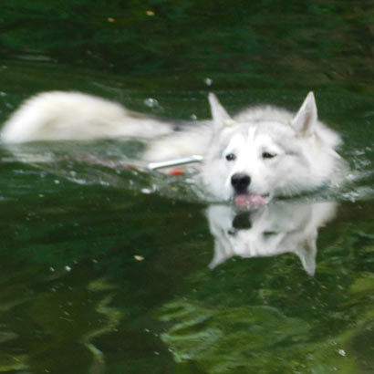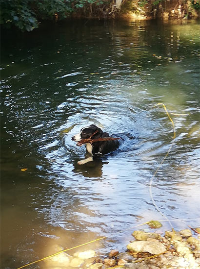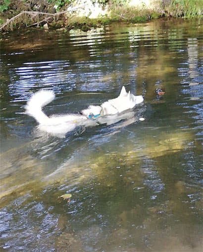 hier ein paar Bilder von Igloo und Moka als sie im Fluss ein Bad nehmen und gemeinsam mit ihren Hundefreunden spielen.