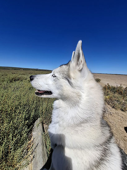 Er hat wunderbar unsere Huskyhündin Moka akzeptiert, die wir auch aus Colmar haben.