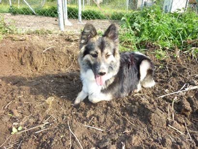 Nein – kleine Korrektur: Wir haben noch 2 graue Gänse. Unsere Lilli findet, dass diese unbedingt in Ihrem Gehege bleiben sollten. Das finden die beiden nicht so lustig und wir müssen aufpassen, dass die Gänse auf die Wiese dürfen. Ansonsten versteht Sie sich prächtig mit unserem Federvieh, wie auf dem Bild zu erkennen ist. Lilli buddelt und das graue Huhn holt die Würmer, Käfer usw. raus. Beide sind sich sehr darin einig, dass ich nicht alleine im Garten arbeiten kann. Ansonsten haben wir unsere Freude an ihr. Sie ist immer noch total verschmust und unbekümmert. Im Auto liegen mit offener Heckklappe ist sensationell. Man ist sofort zur Stelle, wenn sich auf dem Gelände etwas tut. Den ganzen Tag ist Lilli irgendwie beschäftigt. Selbst wenn es Vögel sind, die sich einfach ohne Erlaubnis auf den Haselnußstrauch setzen. Der Strauch hat erheblich gelitten, da ein Teil der Äste wegen den frechen Vögeln abgebissen werden mussten. Im Blumenbeet liegen ist sehr bequem und macht richtig Spass.