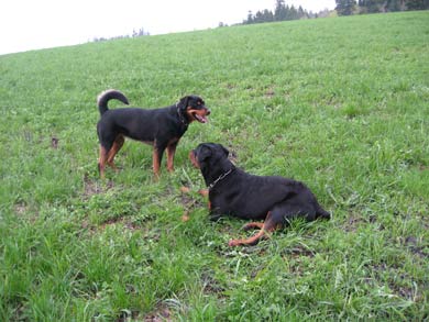 (Frauchen, Herrchen und Rottidame Emma) gut eingefügt.
