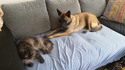 Mit dem Kater Loki läuft es super, die beiden mögen sich und teilen auch schon das Sofa:)