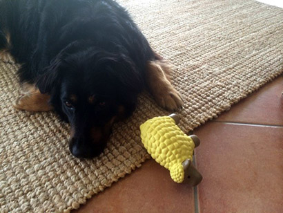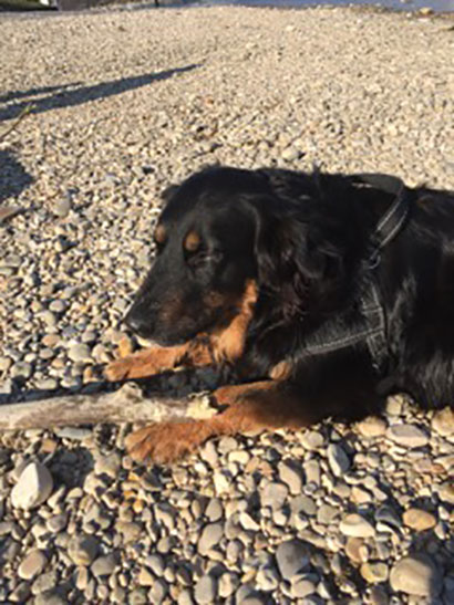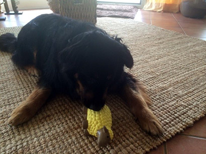 Izzy hat eine tolle Figur und Superkondition bekommen, bedingt durch die langen Spaziergänge und unsere Spiele im Garten (sie hat die Spielsachen entdeckt und kann diese teilweise stundenlang mit sich herumschleppen – ganz besonders ein braun-gelbes Schaf). Weiter hat sie ein wunderbares glänzendes Fell mit einem Rot Stich bekommen. Wasser hat sie schon immer geliebt, war aber punkto schwimmen noch sehr vorsichtig – das hat sich jetzt komplett geändert, sie liebt schwimmen und ich vermute, unter ihren Vorfahren war eventuell auch ein Seehund !!! (Ich habe ein Video von ihr mit Freund Rocky und versuche, dieses per Handy zu senden).