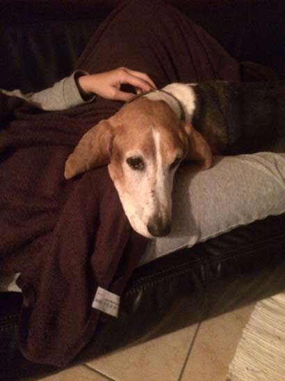 Er lebt jetzt an der Seite einer freundlichen Hündin und dieses stabile Umfeld mit viel Zuwendung, gutem Futter, regelmäßiger Bewegung und einigen homöopathischen Mittelchen hat seine Lebensgeister geweckt und er schafft jetzt sogar den Sprung aufs Sofa.