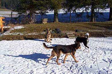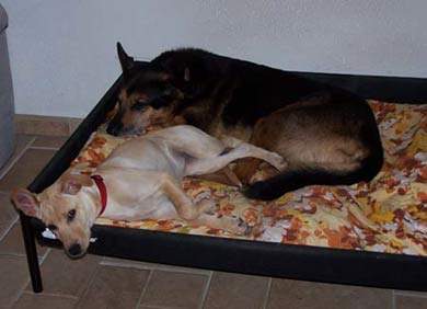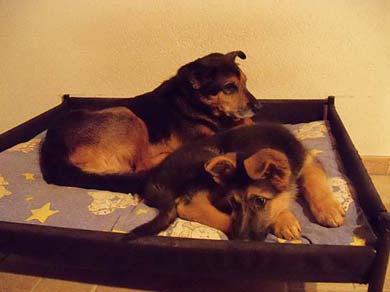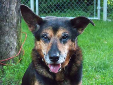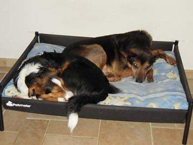 Vor 3 Jahren hat man Jeff in einem elsässischen Wald aufgefunden, wahrscheinlich ausgesetzt von seinem damaligen Besitzer, der wohl der Meinung war, das ein alter Hund nichts mehr wert sei. Jeff wurde dann im Elsass ins Tierheim gebracht. Man schätzte ihn auf ca. 12 Jahre. Damals arbeitete ich noch im Büro, hatte nur meine Grisette, die eigentlich von Artgenossen nicht viel wissen wollte. Da Jeff ein sehr verträglicher, souveräner Rüde ist, habe ich ihn im Elsass besucht, auf der Suche nach einem passenden Zweithund, der vor allem zu Grisette passen musste (ich war da weniger wählerisch ;-)).