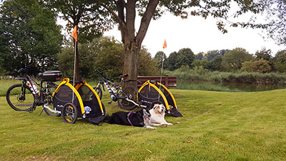 Ein weiteres Highlight ist, das ich meinen eigenen Hängerflitzer bekommen habe und wir ganz oft damit unterwegs sind. Zwischendrin laufe ich auch immer’ne Weile neben her. Ich muss ja an meinen 9 kg Übergewicht arbeiten. Doch mein Herrchen und mein Frauchen lassen mich nicht so viel mitlaufen wie ich gerne würde, also… singe ich hinten in meinem Flitzer hin und wieder ein Liedchen.;-)
