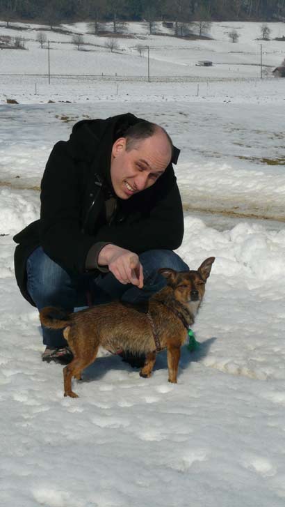Endlich habe ich etwas Zeit gefunden mich mal wieder zu melden. Es ist eine menge Zeit vergangen seit dem letzten mal. Nun bin ich schon über ein Jahr hier in der Schweiz. Was für eine lange Zeit. Aber mir gefällt es immer noch super duper gut hier. Es ist fast so als währe ich gar nie woanders gewesen. Ich habe doch im letzten Brief von meinen Neuen Garten erzählt. Der Zaun steht nun, endlich!!!! Die beiden haben sich ganz schön lange Zeit gelassen! Doch nun endlich ist es fertig. Ich konnte den Garten auch schon ein zwei mal geniessen. Doch leider spielt das Wetter noch nicht ganz so mit wie ich das gerne hätte! Aber so bald die sonne scheint und es ein bisschen Warm ist darf ich meinen Garten und die Sonne geniessen. Der Winter hat mir ganz schön zu schaffen gemacht. Ich mag diese Kält nicht! Ich habe zwar ein super Warmes Mäntelchen, das ich trage sobald die temperaturen unter null sinken. Doch ich mag es nicht so, ich habe lieber die volle bewegungsfreiheit! Nach dem Spazieren lege ich mich dan immer vor den eingeheizten Schwedenofen. Da lasse ich mich dan vom Feuer Grilliren. Frauchen kommt dann ab und zu schauen ob ich schon gar bin! Da kann ich stundenlang liegen und die Wärme geniessen. Wenn dan Herrchen ruft zum Gassi gehen verstecke ich mich im Ehebett am liebsten unter der Decke. Bis der mich dann findet ist es Ihm vieleicht schon verleidet Gassi zu gehen. Doch dem ist nicht so, immer wieder zert er mich in die Kälte. Auch provokatives vor der Türe Sitzen bleiben bringt nichts! Dann werde ich abgeschlept. Ich bin ein ganz schön armer kerl! Ach ja ich habe ein gspänli bekommen. Frauchens Mamma hat einen kleinen Chihuahua aus Malta adoptiert. Lili heist sie und sie ist ca 2 Jahre alt. Mensch kann die Nerven.Das ist die Kleine Schwarze auf den Fotos. Die will immer nur Spielen rennen und wieder Spielen! Und ich will doch nur meine Ruhe haben und Schlafen. Wenn siemich zu sehr nervt haue ich ab oder knurre sie an. Und wenn sie meine Stofftiere klaut, dann giebts was auf die Nuss, oder so, Frauchen holt sie mir dann zurück. Aber sonst klappt es ganz gut mir uns beiden. Zum glück ist sie nicht so einen schnelle Esserin wie ich. Die läuft auch immer wieder vom Napf weg und da bin ich dann zur stelle und fresse ihr alles weg. So schnell kann die gar nicht gucken. Doch leider hatt es frauchen gemerkt, jetzt wird immer kontroliert beim fressen! Naja ich muss ja auch auf meine Figur achten, habe nähmlich 500 gramm übergewicht! Kann mir gar nicht erklären woher das kommt! Nun wird mein Futter rationiert, snif! Aha ganz vergessen beim Onkel Doktor war ich auch wieder. Das war nicht so toll. Hab wieder Zahnstein. Musste also erneut zur Zahnreinigung. Die sagten das ich ganz schlechte Zähne und Zahnfleich habe. Nun bekomme ich neben meinem Magen futter auch noch Zahn futter über. Ich war noch mit Lili Frauchen und Oma in den Ferien im Tessin. Eine Woche Camping. Das war toll. Nur ein bisschen kalt. Es hat sogar geschneit! Doch nach dem Schnee kam die Sonne und es wurden 14 grad. Und das beste war natürlich ich durfte bei Frauchen im Bett schlafen, das darf ich ja zu hause nicht. Also ich finde Ferien toll! Ich könnte das ganze Jahr über in die Ferien gehen mit Frauchen! Hi Hi Hi Nun freue ich mich aber wie alle auf den Sommer wenn er den endlich kommen mag! Ich warte geduldig vor dem Ofen bis es warm wird. So ich glaube das sind alle News, hab noch ein paar Bilder angehängt!