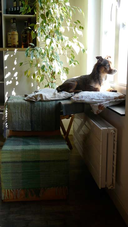 Ach ja ich habe jetzt einen Fensterplatz bekommen! Ich habe mich immer auf den Fenstersims gequetscht um aus dem Fenster zu schauen! Das war ein bisschen und ich musste immer über den Radiator klettern, was für meine kleinen Pfötchen auch nicht gerade angenehm ist. Nun hat mir mein Herrchen einen Fenstertritt oder so gebaut. Damit habe ich nun genug platz um am Fenster zu liegen und mich zu sonnen. Wusstet Ihr wie gefährlich ein Igel sein kann? Ich wollte gerade einen meiner Lieblings Weidepfosten anpinkeln, da kam dieses kleine kugelige und stachelige etwas auf mich zu. Da bin ich sofort los gedüst auf drei Beinen, hatte wohl vergessen das ich pinkeln wollte, und habe mich in Sicherheit gebracht! Langsam wird es ja Frühling, und ich darf mich oft im Garten Sonnen, mit meinem Frauchen und Ihren Eltern. Das macht ganz viel spass. Ab und zu kommen ein paar Katzen vorbei. Denen habe ich aber schon gezeigt wer hier der Boss ist. So schnell konnte die gar nicht kucken wie ich die Weggejagt habe! Schon bald geht es in die Hundeschule. Mal schauen was da auf mich zu kommt, aber ich denke mal das wird sicher lustig.