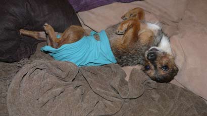 Ich bin der ärmste Hund überhaupt, finde zumindest ich, auch wenn ich der einzige mit dieser Meinung bin. Das beste ist noch ich muss nun für 3 Tage Antibiotika nehmen, wegen den Zähnen, die ich nicht mehr habe, und ich muss so einen doofen Türkis Body tragen! Aber ich bin ja ein Entfesselungs Künstler, Ihr glaubt gar nicht wie schnell ich den ausziehen kann!!!!