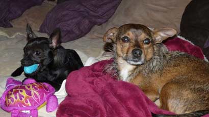 Ich habe in jedem Zimmer ein Kuchelkissen beckommen, denn ich will natürlich immer da sein wo meine Herrchen sind. Und das darf ich auch, nur in der Nacht da schlafe ich lieber alleine auf meinem riesigen Sofa (besser gesagt das sofa gehört eigentlich meinen Herrchen) Ich habe auch schon Hundefreundschaften geknüpft. Lucy war bei mir zu besuch, das ist eine älter Jack Russel Hündin, die ist sogar grösser als ich. Es ist eine ganz liebe, sie bellt ein bischen viel, doch ich mag sie trotzdem.