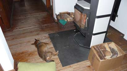 Ich habe auch einen neuen Lieblingsplatz gefunden. Jetzt wos kalt wird, feuert mein Herrchen immer schön fleissig den Chemineofen ein. Und davor zu liegen wenn der brennt ist am schönsten. Da will ich dann gar nicht mehr weg.