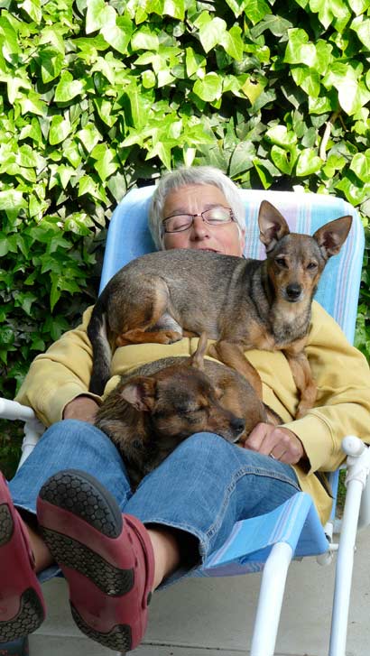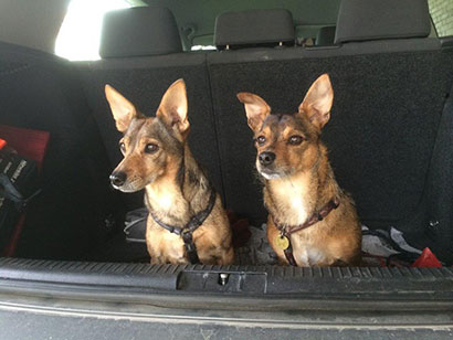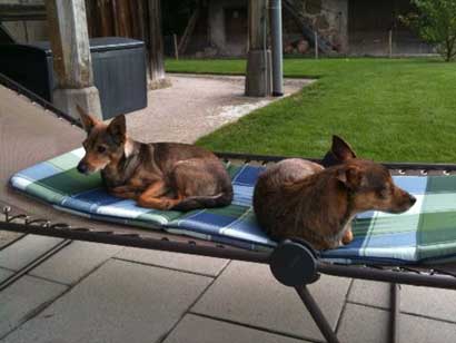 Wir zwei verstehen uns super, wir können sogar gemeinsam auf einem Gartenstuhl liegen!! Das Alleine bleiben musste Frauchen mit Filou auch noch ein bisschen üben, und ich also auch, obwohl ich es kann. So haben sie im Haus immer die Türen hinter sich zu gemacht, das fand ich echt doof, ich konnte gar nicht mehr schauen gehen was die so machen, Na ja mann gewöhnt sich an alles. Dann haben sie uns langsam für kurze Zeit alleine gelassen und den Zeitraum dann immer ein wenig vergrössert. Nun klappt es schon super. Im Tessin sind wir 4 auch noch gewesen, wir haben Oma und Opa, auf dem Campingplatz, besucht übers Wochenende. Ich und Filou haben sind im Kofferraum mitgereist. Ab und zu mussten wir natürlich schauen ob die da vorne noch da sind. Dann sind wir immer abwechselnd an der Rückenlehne hochgestanden und haben geschaut was da vorne läuft. Aber sonst waren wir ganz artig bei der Fahrt.