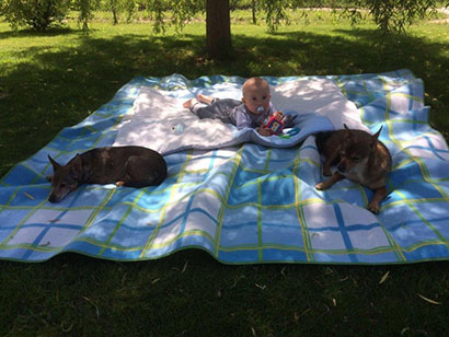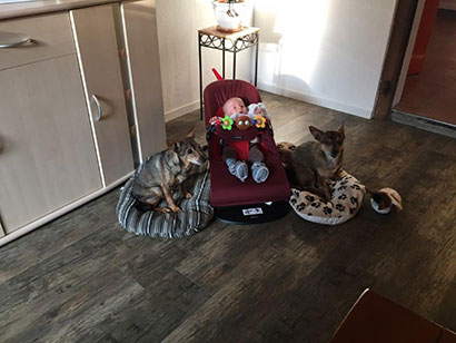 Wir dürfen dann zu Frauchens Mamma gehen. Das ist die mit dem Tollen Schwimmteich!!!! Das macht natürlich viel mehr spass als auf Concours zu sein. Nachwuchs haben wir auch bekommen. Frauchen und Herrchen haben ein kleines Baby bekommen namens Tim. Wir drei sind ein echtes Dream Team!!! Er versorgt uns immer mit leckerem Essen vom Tisch!!! Wir sind beste Freunde!!!