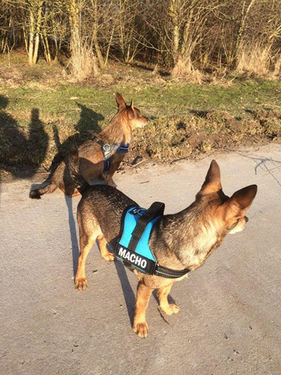 Filou und Snoopy sind ein Super-Gespann zusammen. Die Beiden sind unzertrennlich und natürlich der Hingucker egal wo sie auftauchen. Da muss man dann erst mal erklären dass sie nicht verwandt sind. Wenn sie beim spazieren vorne weg rennen, sieht es aus wie Rambo (Snoopy) und Plattfuß ( Filou). Mit seinen x Beinen hinten hat er ein spezielles Gangbild und Snoopy sieht von hinten wie ein Bodybuilder aus. Wir geben keinen der beiden mehr her!!!!