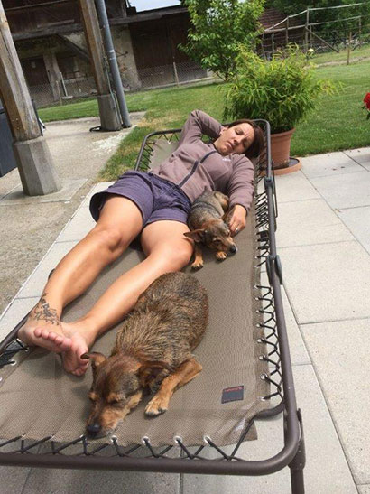 Ich war ja sogar mit den Eltern von meinem Frauchen im Tessin in den Ferien. Da wurde ich jeden Tag im Anhänger umherschoffiert. Das hat mir Spass gemacht. überhaupt finde ich Campingurlaub super. Da kann ich den ganzen Platz bewachen. Denn wo ich mal bin gehört alles mir und das muss ich ja auch verteidigen und bewachen. Sonst klaut noch jemand mein Veloanhänger und das will ich auf keinen Fall.