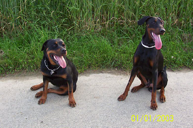 einmal einen Dobermann Rüden Tayson und einen Labrador-mix