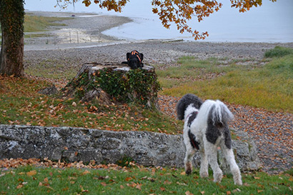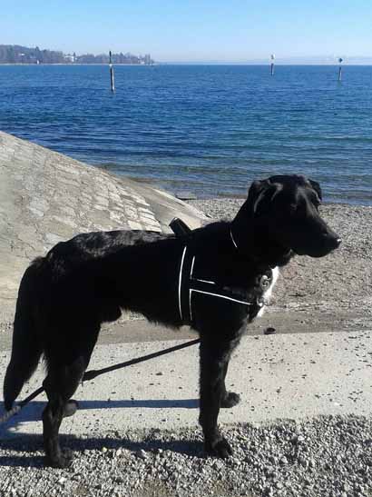 Also gut. Es gibt ja genug andere Spielzeuge in unserem Haushalt. Überhaupt finde ich, dass meine „Eltern“ mich sehr gut beschäftigen und sich um meine Bedürfnisse kümmern. Wir wohnen ja auch echt schön hier am Bodensee und ich kenne auch schon jede Menge andere Hundekumpels, mit denen ich um die Bäume renne, wenn ich sie treffe. Natürlich muss ich ab und zu dem ein oder anderen imponieren, auch macht es mir einen Heidenspaß, kleinere oder schwächere Hunde ein bisschen zu erschrecken, in dem ich sie fast über den Haufen renne. Aber ich meine es nicht böse, ich habe noch nie jemanden gezwickt, das liegt mir auch nicht.