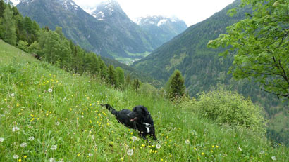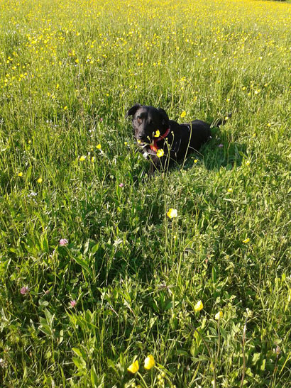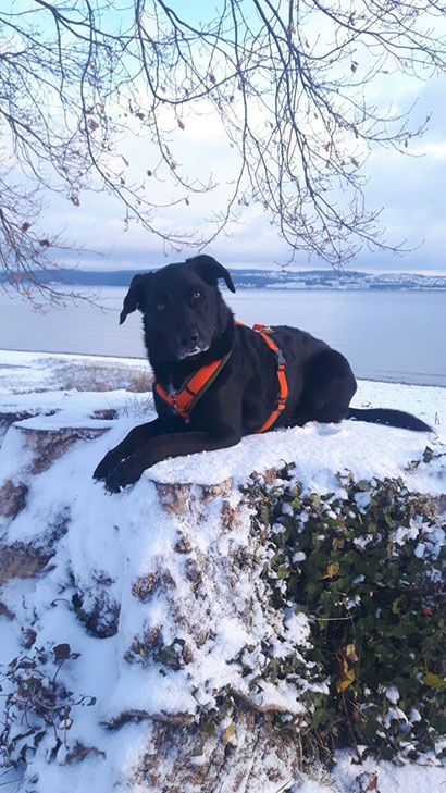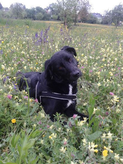 Aber alles in allem haben meine „Eltern“ den Dreh mit mir schon richtig gut raus. Seit Mai 2015 gehen wir regelmäßig mantrailen, da darf ich mit einer Nasenlänge voraus versteckte Personen suchen. Das macht voll Spaß! Unsere Trainerin meint, ich sei der zweitschnellste Hunde im Suchen im Vergleich zu all den anderen Hunden, die sie je angelernt hat. Sie sagt mir immer, wie toll ich wieder gesucht habe, dass ich einfach ein „feiner Kerl“ bin und meine „Eltern“ richtig Glück mit mir gehabt hätten. Das Trailen hat meine Bindung zu meinen „Eltern“ noch mehr gefestigt, wenn das überhaupt möglich ist. Wir sind nämlich wirklich schon ein richtig gutes Team, wir drei.