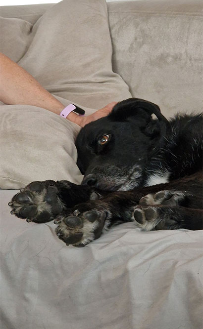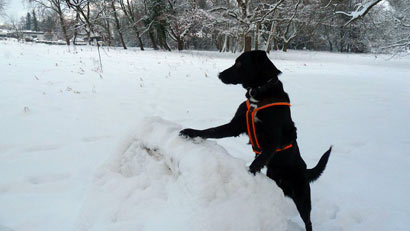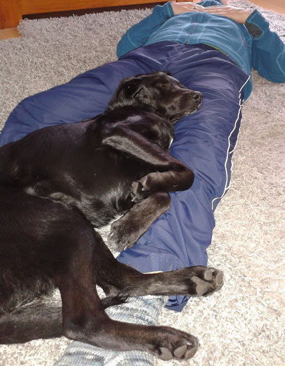 Ich hab die beiden echt super lieb und ich denke, sie mich auch, zumindest schmusen sie ständig mit mir, so dass ich mich auf den Rücken drehen kann und sie sagen mir dauernd wie lieb und brav ich bin und vor allem, wie toll ich wieder gesucht und gefunden habe. Dabei ist das doch die leichteste Übung für mich. Das Schnüffeln liegt ja in meiner Natur. Und ich weiß auch ganz genau, was oder wen ich suchen soll und bin sehr ehrgeizig und gewissenhaft bei der Sache. „Papa“ nennt mich immer seinen „Musterschüler“ :-)