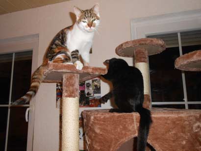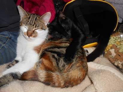 anbei ein paar neue Fotos von den beiden. Es geht ihnen sehr gut, mittlerweile schlafen beide Katzen im Bett, bald brauchen wir ein größeres Bett :-)