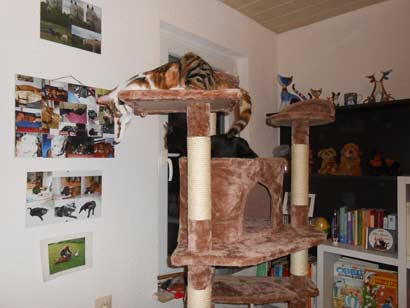 Mimi und Kitty sin jetzt in meinem Arbeitszimmer und unserem Schlafzimmer (2 Zimmer mit Durchgangstür).