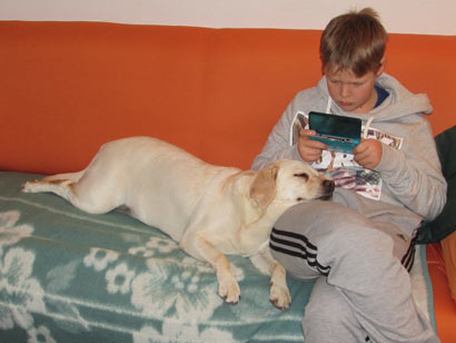 hier ein paar Fotos von Laika mit den Grosskindern beim Ballspielen und in der Küche beim Kochen helfen.(Es kann ja immer etwas runterfallen:) ) Sie hat sich eingelebt und es geht Ihr gut.