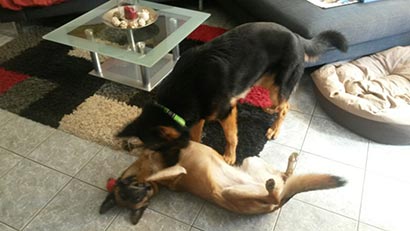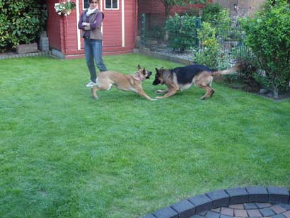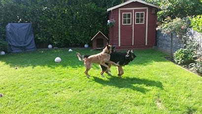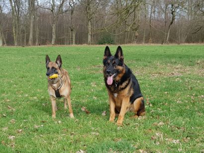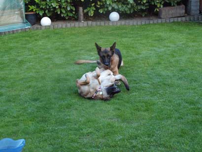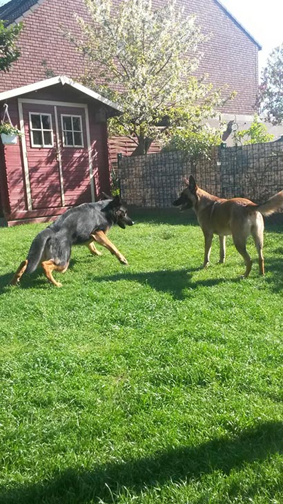 Laika hat einen neuen Freund. Der bildhübsche Schäferrüde Nero brauchte schnell ein neues Zuhause und durfte bei Laika einziehen. Wie man sieht verstehen sich die beiden blendend.