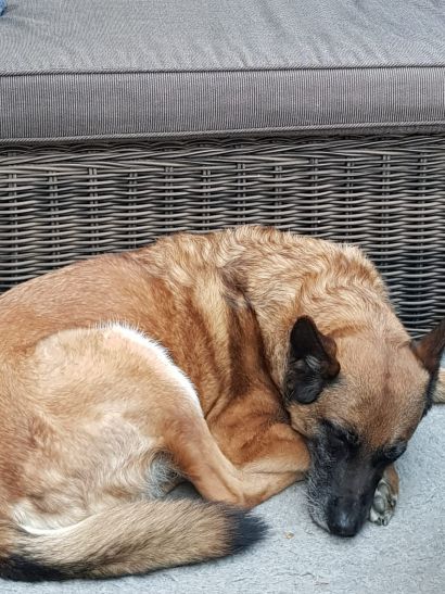 Dann tobt sie wieder mit rum und man merkt Ihr Alter nicht. Als wir sie übernommen haben, hatte sie ja schon eine Arthrose in der linken Schulter. Die hat sich natürlich im Laufe der Zeit verschlechtert. Aber noch kommen wir ohne Schmerzmittel aus.