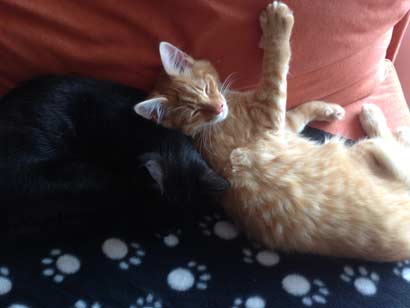 Mistral (jetzt leeroy) geht es wunderbar... Es geht ihm bestens und er versteht sich super mit seinem Kumpel Titus. Er lernt von ihm gerade das maunzen (er konnte bis jetzt nur piepsen, aber Titus redet und maunzt den ganzen Tag und zeigt es ihm :) )