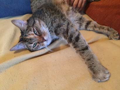 Sie lebt sich gut ein und scheint sich wohl zu fühlen, erkundet das Haus, schnurrt und schmust sehr viel und sucht unsere Gesellschaft. Auch zu Jagdspielen mit dem Wollfaden läßt sie sich ganz gerne animieren.