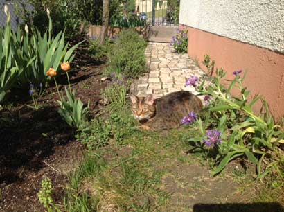 Hier ein paar Frühlingsgrüße von Zoe, die jetzt doch zunehmend Geschmack am draußen- sein findet. Es hat ein bisschen gedauert. Wir glauben, sie ist früher mal eine Wohnungskatze gewesen. Sie ist im Freien supervorsichtig und wollte erstmal alleine gar nicht raus, und erst recht nicht tagsüber, und alle paar Minuten mußte sie sich überzeugen, das auch ja die Tür noch auf ist.