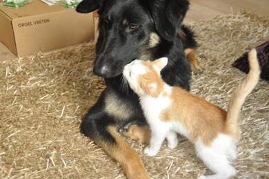 freudig begrüßt. Die Plegehunde und -Katzen (besonders
