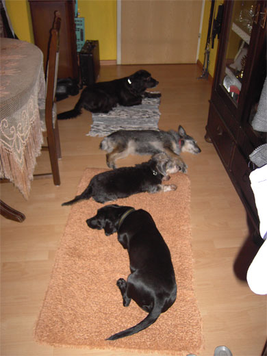 das Bett ! Nur, schlaf mal bequem und entspannt, wenn vier Wuffs